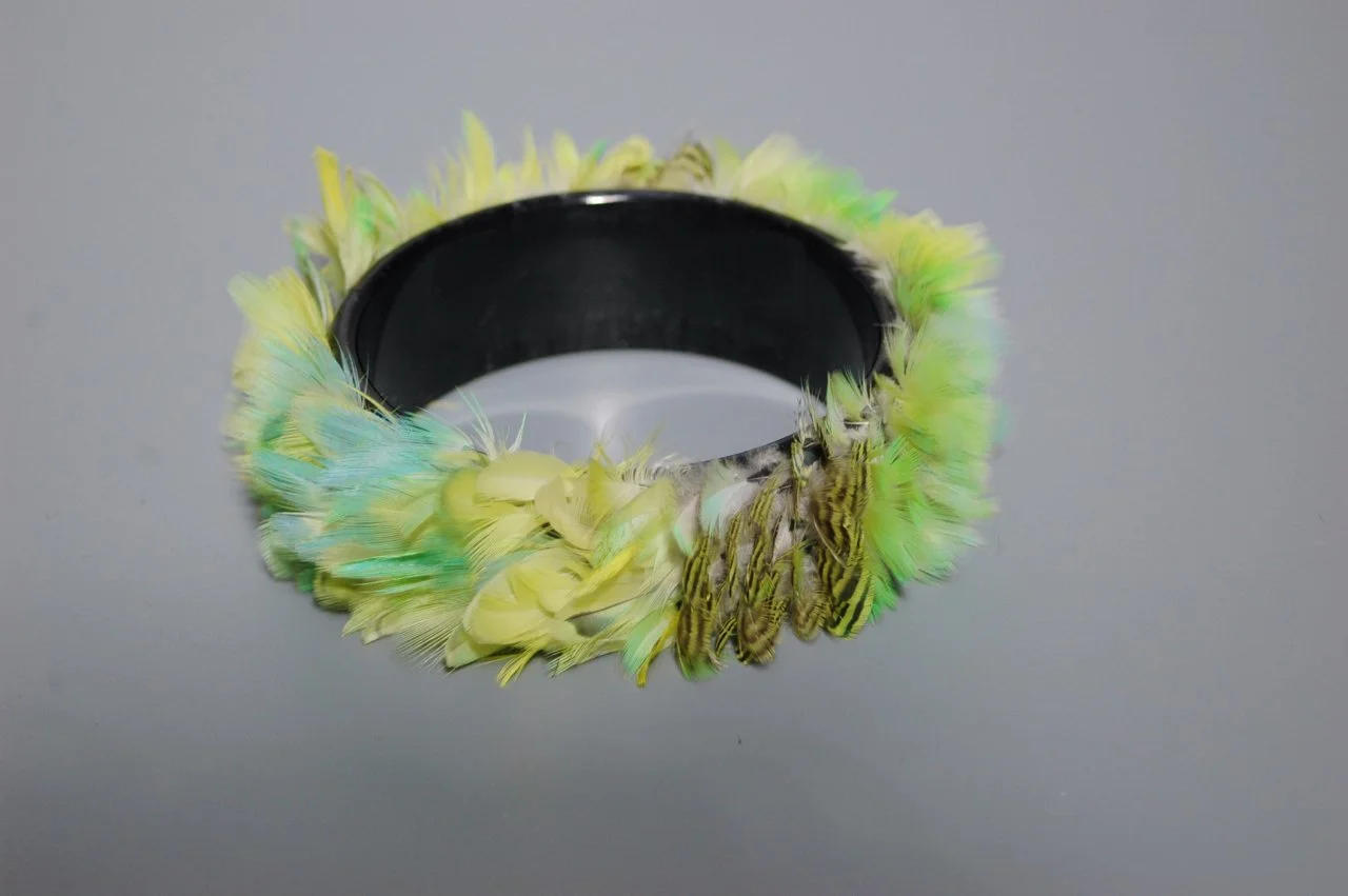 Bangles Beaded Bracelet, made to order $50 Beaded Bangle - Stretchy - Multiple colours. Budgie Bangle Budgie feathers on plastic bangle. 2005 Seed Pod & Budgie Feather Bangle
