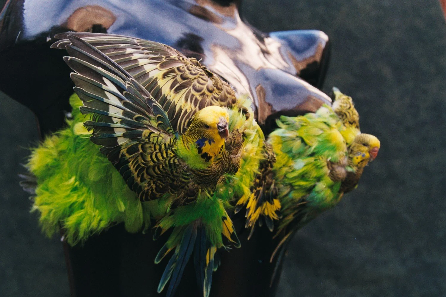 World of Wearabale Art Budgerigar Brassiere 2002, Budgie feathers & taxidermy parts and mixed media, size 12 B (Photo Emily Valentine) Winner of Macs Collection of Worl of Wearable Art Museum ,Nelson NZ